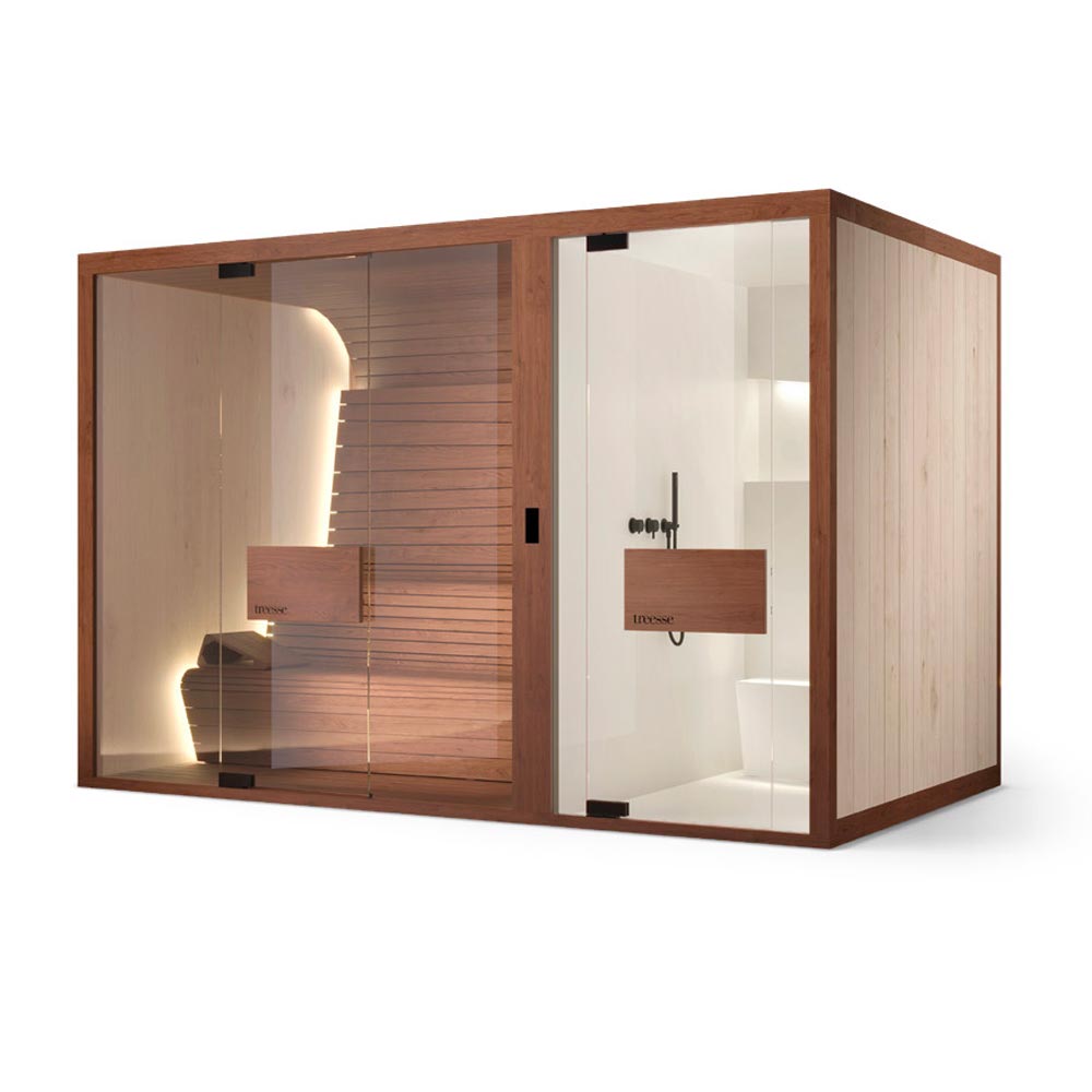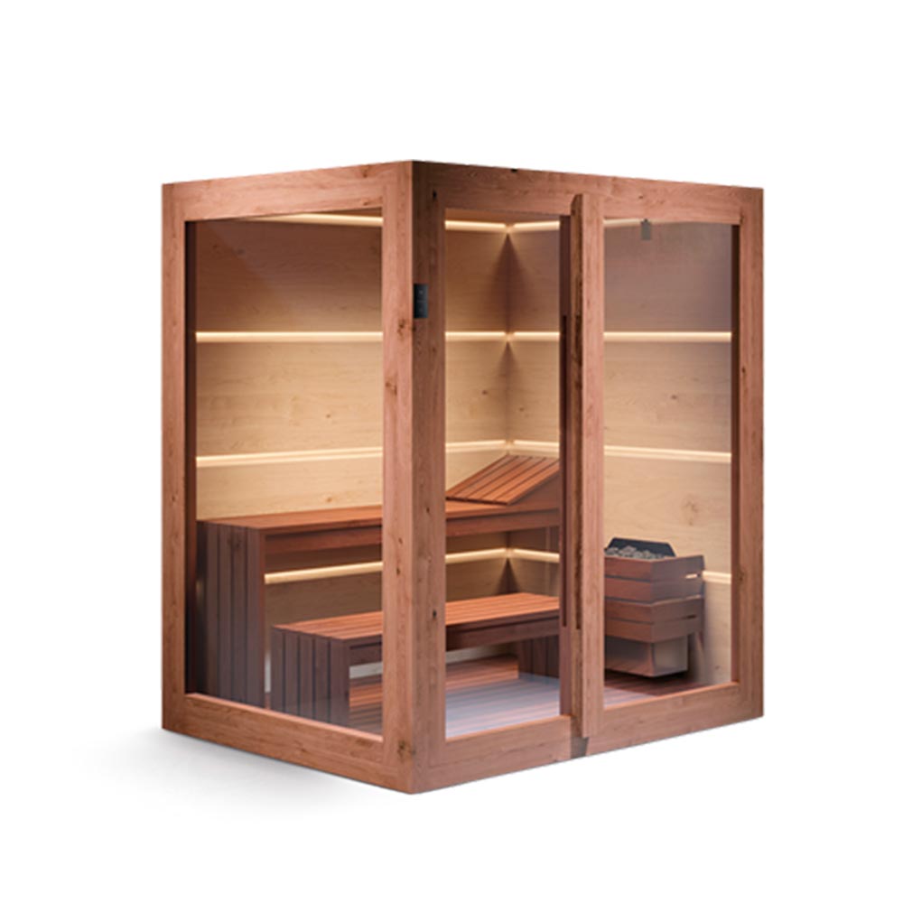 Ogni sauna è progettata per integrarsi perfettamente con il tuo spazio, sia interno che esterno. Personalizza le dimensioni, i materiali e gli accessori per creare un’esperienza che rispecchi il tuo stile e le tue necessità.